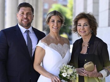 La familia de Ana Rosa Quintana está de celebración. Este sábado, 7 de septiembre, su sobrino Kike se ha dado el 'Sí, quiero' con su pareja Cristina en una ceremonia de lo más familiar e íntima en el Ayuntamiento de Alcobendas, Madrid. Reflejando la gran unión que tiene con su sobrino, la presentadora de televisión no ha querido perderse este gran día para el joven y posar con los dos tortolitos tras el compromiso. Tras cinco años de amor, el sobrino de Ana Rosa sorprendía a su pareja en una fiesta de cumpleaños pidiéndole matrimonio, a lo que Cristina respondió con un 'sí'. Hoy, un año más tarde de este momento, los dos enamorados han hecho realidad su sueño rodeados de todos sus seres queridos. La novia ha elegido para esta ocasión un vestido de lo más sencillo, clásico, con un escote en V cubierto por un encaje. Por su parte, Ana Rosa ha arriesgado con un vestido ajustado que ha combinado con una blusa semitransparente abierta. Kike ha sido una de las apuestas de su tía en 'TardeAR', programa que comenzó hace ya un año cuando se despidió para siempre de las mañanas de Telecinco y comenzaba una nueva etapa, mucho más moderna y juvenil, en las tardes de la cadena. Después de años en redacción, el joven ha sabido hacerse con un espacio en el programa, 'Fila Zero', en el que el humor está asegurado analizando vídeos y repasando momentazos que se viven en el programa a lo largo de la semana.