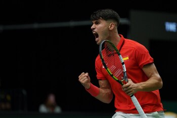 El equipo de España ha batido este viernes por 2-1 al de Francia en su segundo emparejamiento del Grupo B en la fase preliminar de las Finales de la Copa Davis, gracias a las victorias de Roberto Bautista ante Arthur Fils por 2-6, 7-5 y 6-3 y de Carlos Alcaraz frente a Ugo Humbert por 6-3 y 6-3, sacando billete para la Fase Knock-out de este torneo, que se disputará del 19 al 24 de noviembre en Málaga. El conjunto que capitanea David Ferrer afrontaba su segunda cita con el colchón de su positivo debut, donde se impuso por 3-0 a Chequia, y el de Jávea repitió formación con Bautista abriendo fuego y Carlos Alcaraz secundando. Y luego, el murciano en teoría acompañará a Marcel Granollers para redondear en el dobles su billete a la siguiente ronda. Sin embargo, las cosas no comenzaron bien en el Pabellón Fuente de San Luis, siendo Bautista dominado por un Fils al que le tembló el pulso en el momento más inoportuno para él. El primer punto de este emparejamiento, clave para los franceses por haber perdido hace tres días en su debut contra Australia, ya presagió un encuentro duro. Más de 15 minutos de batalla que acabó del lado del francés de 20 años. Aunque no sujetó esa renta porque Bautista replicó al siguiente juego, en el intercambio de roturas salió finalmente perdedor el de Castellón, pues volvió a ceder su saque por segunda vez y su adversario ya no lo desperdició porque fue elevando su nivel. Fils fue superior con más agresividad en sus golpes y, con un tercer 'break', puso todo cuesta arriba. El castellonense trató de rehacerse y por fin se adelantó en el marcador al inicio del siguiente set, alegría efímera porque su desempeño no tuvo continuidad y el galo continuó siendo dañino. Así, Fils rompió pronto y recuperó la iniciativa. Con sufrimiento, Bautista no se desenganchó hasta verse 4-5 abajo y tener que restar. Ahí, apareció la llamada 'magia' de la Davis en la Fonteta y todo lo bueno que había hecho Fils se tornó en errores para ceder su saque y entrar en una inercia negativa que le condenó la manga, habiendo encajado cuatro juegos seguidos. Entraron en escena las artimañas, como la de Fils siendo atendido en su pierna derecha por el fisioterapeuta tras, 'a priori', no haber pedido esa asistencia al juez de silla. El comienzo del tercer set era de aúpa, con el pabellón fervoroso mientras estaba en ciernes otra de las ya habituales remontadas de Bautista en la Davis. Salvó el castellonense una bola de quiebre nada más arrancar dicho set y más adelante, en el cuarto juego, él malgastó un 0-40 al resto. La puntería del francés ya no estaba siendo excelsa, pero aguantaba los arreones de su contrincante en comunión con las gradas de la Fonteta. Habiendo resuelto momentos de tensión en el larguísimo quinto juego (3-2), el español mantuvo distancias (4-3) y en el octavo apretó a un Fils pasado de fuerza en remates clave. Después de consumar ahí un 'break' de júbilo para todo el estadio, el jugador local se dispuso a sacar y amarró en blanco el 6-3 definitivo, después de casi tres horas. A continuación, Alcaraz saltó a la cancha para medirse contra un Humbert en buena forma durante las últimas semanas. Y el francés mostró algunas de sus virtudes con saque+volea en el juego inaugural. Luego se hilvanaron tres juegos con éxito al saque y en blanco, hasta que en el quinto tomó la delantera el murciano y se forjó una bola de 'break'. En ese 30-40 y segundo saque, rubricó Alcaraz un gran resto que no devolvió Humbert; a la red su 'drive' con la zurda y 3-2 a favor del tenista de El Palmar, quien cristalizó su ventaja de manera inmediata y enfiló su victoria en el primer parcial con un noveno juego de poder a poder. Espoleado por esa situación, Alcaraz quería más y gozó pronto de una oportunidad de rotura. No cuajó ahí y tampoco en el cuarto juego pese a merodearla (0-15, 15-30), pero la intención era clara y el galo no resistió demasiado. En el sexto juego, a la cuarta ocasión, el murciano se colocó 4-2 arriba y amplió esa renta con un servicio en blanco. Humbert alargó escasos minutos un desenlace que parecía inevitable, ya que el palmareño ni se inquietó por ir 0-40 sacando en el noveno juego. A lomos de la Fonteta, Alcaraz volteó el marcador y con un 'drive' paralelo de derecha se apuntó este duelo tras una hora y 20 minutos, asegurando el triunfo global y el billete para la Final 8. La clasificación para esa Fase Knock-out de Málaga estaba asegurada, así que Alcaraz no disputó el dobles y en su lugar entró Pablo Carreño para acompañar a Marcel Granollers. Aguantaron el tipo a Pierre-Hugues Herbert y Edouard Roger-Vasselin, quienes crearon poco peligro al resto en el primer set, desaprovechando sus tres pelotas de 'break'. Aún menos incordiaron Carreño y Granollers al dúo francés, pues no gozaron de oportunidades para romper en toda esa manga. Así que decidió la muerte súbita, con remontada española del 0-2 al 6-4, 'interruptus' por el buen desempeño de Roger-Vasselin al otro lado de la red. Con 8-7 a su favor, la dupla gala agarró ese 'tie-break' a la primera ocasión. El siguiente parcial fue un 'déjà vu', pues los anfitriones salvaron su única bola de 'break' en contra y no se granjearon ninguna a favor. Por tanto, otro muerte súbita tenía la palabra; y fue de órdago y llena de talento por ambos equipos. Carreño y Granollers pasaron del 0-1 al 4-5, y más tarde se les escaparon tres pelotas de set (5-6, 6-7, 7-8). Herbert mejoró al resto y los franceses tuvieron dos 'match points' (9-8, 10-9) que no fueron a buen puerto porque Granollers se defendió como un jabato. Carreño se sumó al fervor y España se apuntó la muerte súbita por 10-12, provocando que este último punto del emparejamiento se decantara hacia un lado u otro en un súper 'tie-break' final. En dicho escenario, la pareja francesa estuvo siempre arriba en el tanteador y, voleando en la red bien posicionad