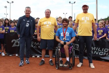 El tenista paralímpico español Daniel Caverzaschi fue homenajeado este martes en la academia de Emilio Sánchez Vicario, en El Prat de Llobregat (Barcelona), para celebrar su medalla de bronce en los Juegos Paralímpicos de Paris 2024 junto a Martín de la Puente en dobles. El acto contó con el CEO y fundador de la Emilio Sánchez Academy, Emilio Sánchez Vicario, quien hizo entrega de una placa conmemorativa a Caverzaschi. "Esta es una historia de inspiración, gestión de resiliencia y de romper barreras. Dani ha conseguido hacer su historia y eso hay que celebrarlo", aseguró Sánchez Vicario. "Tuve la suerte de conocerle en sus inicios y ayudarle para poder llegar a Londres 2012, que era su sueño. Después seguimos manteniendo relación gracias a los torneos que organiza mi fundación en Madrid y en Barcelona y cuando se lesionó y tenía que decidir si volver o retirarse. La academia ha sido su segunda casa y él ha sido cercano, amigo de los alumnos y siempre un ejemplo. Compartimos los mismos valores y hemos querido darle un recibimiento como merece", añadió. Junto a sus entrenadores Stefan Ortega y Alex Gaspa y rodeados de los alumnos, profesores y trabajadores de la academia y colegio, fue un emotivo homenaje en su academia para Daniel Caverzaschi, emocionado con el gesto. "Este triunfo en París significa mucho para mí, ha sido un año y medio duro y, como dice mi lema, ha valido la pierna", afirmó Daniel Caverzaschi. "Realmente siento que formo parte de una familia y este triunfo es de todo el equipo. Estoy muy contento aquí y me gusta servir como ejemplo a los chavales de la academia, con los que convivo y entreno", añadió el medallista paralímpico. Asimismo, Caverzaschi aseguró que el deporte tiene un "poder transformador inmenso", no solo en términos físicos, sino también sociales. "Espero que mi historia y este logro puedan servir para animar a más personas a creer en sus capacidades, sin importar las barreras que se encuentren en su camino", comentó. Este reconocimiento coincide con el inicio de curso de la Emilio Sánchez Academy, que celebra su 25 aniversario. La institución ha estado un cuarto de siglo combinando con éxito la educación y el deporte de élite, siendo pionera en ofrecer un modelo educativo integral que permite a los jóvenes talentos desarrollarse tanto académica como deportivamente.