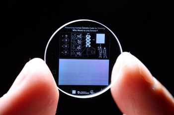 Científicos de la Universidad de Southampton han almacenado el genoma humano completo en un cristal de memoria 5D, un formato de almacenamiento de datos que puede pervivir miles de millones de años. El equipo espera que el cristal pueda proporcionar un modelo para rescatar a la humanidad de la extinción dentro de miles, millones o incluso miles de millones de años en el futuro, si la ciencia lo permite. Ha sido guardado en una mina de sal de Austria. La tecnología también podría utilizarse para crear un registro duradero de los genomas de especies de plantas y animales en peligro de extinción. El cristal de memoria 5D fue desarrollado por el Centro de Investigación de Optoelectrónica (ORC) de la Universidad de Southampton. HASTA 360 TERABYTES DE INFORMACIÓN A diferencia de otros formatos de almacenamiento de datos que se degradan con el tiempo, los cristales de memoria 5D pueden almacenar hasta 360 terabytes de información (en el tamaño más grande) sin pérdida durante miles de millones de años, incluso a altas temperaturas. Posee el récord mundial Guinness (otorgado en 2014) al material de almacenamiento de datos más duradero. El cristal es equivalente al cuarzo fundido, uno de los materiales más duraderos química y térmicamente de la Tierra. Puede soportar temperaturas extremas, tanto altas como bajas, de congelación, fuego y de hasta 1000 °C. El cristal también puede soportar una fuerza de impacto directa de hasta 10 toneladas por cm2 y no sufre cambios a pesar de una exposición prolongada a la radiación cósmica. El equipo de Southampton, dirigido por el profesor Peter Kazansky, utiliza láseres ultrarrápidos para inscribir con precisión los datos en huecos nanoestructurados orientados dentro de sílice, con tamaños de características tan pequeños como 20 nanómetros. A diferencia de marcar solo en la superficie de una hoja de papel 2D o una cinta magnética, este método de codificación utiliza dos dimensiones ópticas y tres coordenadas espaciales para escribir en todo el material, de ahí el "5D" en su nombre. La longevidad de los cristales significa que sobrevivirán a los humanos y a otras especies. Actualmente, no es posible crear de forma sintética seres humanos, plantas y animales utilizando únicamente información genética, pero en los últimos años se han producido importantes avances en biología sintética, en particular la creación de una bacteria sintética por parte del equipo del Dr. Craig Venter en 2010. "Sabemos por el trabajo de otros que el material genético de organismos simples se puede sintetizar y utilizar en una célula existente para crear un espécimen vivo viable en un laboratorio", afirma el profesor Kazansky en un comunicado. "El cristal de memoria 5D abre posibilidades para que otros investigadores construyan un depósito eterno de información genómica a partir del cual se puedan restaurar organismos complejos como plantas y animales si la ciencia lo permite en el futuro". GUARDADO EN UNA MINA DE SAL DE AUSTRIA Para probar este concepto, el equipo creó un cristal de memoria 5D que contiene el genoma humano completo. Para los aproximadamente 3.000 millones de letras del genoma, cada letra se secuenció 150 veces para asegurarse de que estuviera en esa posición. El trabajo de secuenciación de lectura profunda se realizó en colaboración con Helixwork Technologies. El cristal está almacenado en el archivo de la Memoria de la Humanidad, una cápsula del tiempo especial dentro de una cueva de sal en Hallstatt, Austria. Al diseñar el cristal, el equipo consideró si los datos que contiene podrían ser recuperados por una inteligencia (especie o máquina) que venga después de nosotros en un futuro lejano. De hecho, podrían ser encontrados tan lejos en el futuro que no exista ningún marco de referencia. La clave visual inscrita en el cristal le permite al que lo encuentre saber qué datos están almacenados en su interior y cómo podrían usarse", dice el profesor Kazansky. Por encima de los densos planos de datos que contiene, la clave muestra los elementos universales (hidrógeno, oxígeno, carbono y nitrógeno); las cuatro bases de la molécula de ADN (adenina, citosina, guanina y timina) con su estructura molecular; su ubicación en la estructura de doble hélice del ADN; y cómo se posicionan los genes en un cromosoma, que luego puede insertarse en una célula. Para tener una indicación visual de a qué especie pertenece el cristal de memoria 5D, el equipo rindió homenaje a las placas de la nave espacial Pioneer que la NASA lanzó en un camino para llevarla más allá de los confines del sistema solar. "No sabemos si la tecnología de cristales de memoria seguirá alguna vez a estas placas en cuanto a distancia recorrida, pero se puede esperar con un alto grado de confianza que cada disco supere su tiempo de supervivencia", añade el profesor Kazansky.