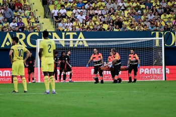 El meta alemán se lastimó la rodilla derecha -la misma de la que ya fue operado en mayo de 2021- en una mala caída, tras una salida, y tuvo que abandonar el terreno de juego en camilla, siendo sustituido por Iñaki Peña.