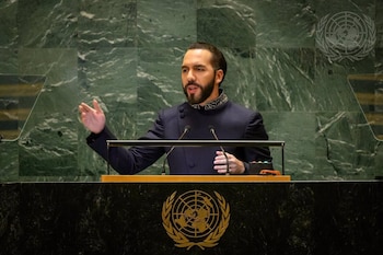 El presidente salvadoreño, Nayib Bukele, ha asegurado este martes ante la Asamblea General de Naciones Unidas que el mundo "es cada vez menos libre" y que se dirige hacia "una nueva era oscura" en un discurso centrado en el aumento de la inseguridad y de los recortes de derechos civiles en todos los países, excluyendo a El Salvador, cuya situación "ha cambiado significativamente en muy poco tiempo". "Estamos ante una nueva era oscura de la humanidad. Como salvadoreños, reconocemos estos síntomas de la decadencia cuando los vemos, porque hemos pasado por todos ellos. Vivimos las etapas de la caída de nuestra nación. Y estamos viendo esas mismas etapas una vez más, pero esta vez a escala global. No podemos ni deseamos decirles a otros países lo que tienen que hacer. Cada país debe tomar sus propias decisiones y hacer lo que sea mejor para su gente", ha manifestado Bukele durante su intervención. En ese sentido, ha afirmado que un país tan "pequeño" como El Salvador no puede "cambiar el curso del mundo" pero sí ofrecer "consejos" y convertirse en "un pequeño refugio ante la tormenta que se aproxima". También ha explicado que, mientras que el país centroamericano se ha vuelto "más seguro", el mundo moderno ha ido en dirección contraria y se vuelve "cada vez más pesimista" debido a que "el mundo libre ya no es libre". "Las nuevas amenazas de guerras continúan. Cuando el mundo libre se volvió libre fue gracias a sus principios de libertad de expresión, igualdad ante la ley, unidad y respeto por la propiedad privada. Pero una vez una nación abandona sus principios que la hace libre, es solo cuestión de tiempo para que pierda su libertad por completo. Las consecuencias se están desarrollando ante nuestros propios ojos. Las podemos ver en algunas ciudades del llamado primer mundo", ha agregado. De la misma forma, ha relatado como las tiendas necesitan "asegurar sus productos", incluso los baratos, como las ciudades "ya no pertenecen a la gente" porque "han caído en manos de la indigencia, de las pandillas, del crimen organizado y de las drogas". "No puedes reclamar el título de mundo libre si ni siquiera tu gente es libre para caminar por las calles sin temor a ser acosada, robada o asesinada", ha agregado. CRÍTICA A LA PÉRDIDA DE LA LIBERTAD DE EXPRESIÓN EN OCCIDENTE Asimismo, ha criticado la "erosión de la libertad de expresión" en Occidente, que hace diez años "era el bastión de la libertad de expresión" mientras que ahora "es sermoneado por quienes solían denunciar". En base a ello, ha hecho referencia a las redes sociales que han sido obligadas a censurar a usuarios a petición de sus propios Gobiernos, que han llegado a realizar arrestos "por compartir publicaciones en redes sociales" y que incluso "han intentado prohibir a su oposición política", si bien no ha puesto ejemplos concretos. "En El Salvador no encarcelamos a nuestra oposición, no censuramos opiniones, no confiscamos bienes de quienes piensan diferente, no arrestamos a las personas por expresar sus ideas. En El Salvador tu libertad de expresión, así como tu propiedad privada, siempre estarán protegidas. En El Salvador polarizamos la seguridad de nuestros ciudadanos honestos sobre la comodidad de los criminales. Algunos dicen que hemos encarcelado miles, pero la realidad es que hemos liberado a millones. Ahora son los buenos los que viven libres, sin miedo, con sus libertades y Derechos Humanos totalmente respetados", ha añadido. Tras ello, ha destacado que El Salvador, que "solía ser uno de los lugares más oscuros del planeta", ha "renacido" porque el pueblo salvadoreño recordó que "la libertad se toma", logrando así superar "el desafío más grande" del país, si bien ha recordado que "todavía queda un largo camino por recorrer y muchas cosas que lograr". "Tal vez sea demasiado tarde para evitar los tiempos oscuros que enfrenta nuestro mundo hoy, pero no es demasiado tarde para construir una arca y capear la tormenta. Que Dios bendiga a la humanidad", ha finalizado.