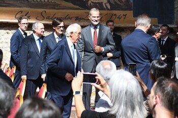 El rey Felipe VI ha presidido este miércoles el acto institucional del 50 aniversario de la inauguración del Teatre-Museu Dalí de Figueres (Girona), celebrado bajo la cúpula de la pinacoteca daliniana. Felipe VI, que es presidente de honor de la Fundació Gala-Salvador Dalí, ha sido recibido a su llegada por el presidente de la Generalitat, Salvador Illa; el ministro de Industria y Turismo, Jordi Hereu; el delegado del Gobierno en Catalunya, Carlos Prieto; el alcalde Jordi Masquef; la consellera de Cultura, Sònia Hernández, y el presidente de la fundación, Jordi Mercader. A su llegada al Teatre-Museu Dalí, el monarca ha sido recibido con aplausos por más de una cincuentena de personas congregados a un lado del museo que han gritado lemas como 'Viva el rey', pero también con gritos de una decena de personas contrarias a su presencia, con proclamas como 'Fora el rei' (Fuera el rey), al otro lado. COINCIDE CON LA INFANTA CRISTINA Al acto institucional han asistido, además de las autoridades, patronos vitalicios como la hermana del rey, la Infanta Cristina, Enrique Barón, Miguel Doménech, Òscar Tusquets, Miquel Roca, Narcís Serra, Javier Godó, David Vegara y Montse Aguer, y patronos institucionales como Màrius Carol y Mariona Seguranyes, así como personalidades como el presidente del Banc Sabadell, Josep Oliu, y el director del Museu Nacional d'Art de Catalunya, Pepe Serra, entre otros. Tras presidir el acto institucional, el rey ha visitado las instalaciones del Teatre-Museu Dalí por espacio de una hora, en el que se acaban de abrir tres exposiciones para celebrar la efeméride y se exhibe la última adquisición del museo, el óleo 'El naixement de les angoixes líquides', y ha firmado en el libro de honor de la pinacoteca. El acto institucional, conducido por la periodista Sílvia Cóppulo, quien se ha atrevido con el trabalenguas 'Una polla xica' que pronunció Dalí y que ha contado con un breve concierto del Quartet Casals, ha constado de un discurso del presidente de la Fundació Gala-Salvador Dalí, Jordi Mercader, y la proyección de un fragmento de un audiovisual sobre el artista, que incluye imágenes de la inauguración del museo en 1974. "PERMANENCIA DE SU GENIALIDAD" En su discurso, Mercader ha asegurado que la efeméride quiere "reconocer el pasado y asumir los retos de futuro", y ha subrayado que la sociedad puede contar con el esfuerzo y afán de la fundación para conseguirlo. Mercader ha afirmado que la fundación quiere cumplir con el legado de Dalí gracias a la buena entente con el museo, estimular la cultura a través del conocimiento, ayudar a disfrutar de la emoción de la belleza y ser "el puerto seguro de las emociones compartidas". El presidente de la Fundació Dalí ha asegurado que cuando se inauguró pocos excepto Dalí pensaron que el museo tuviera tanto éxito, pero que la calidad y el interés por su obra es la clave: "El museo es su culminación y un camino para la permanencia de su genialidad". A su salida, hacia las 13.45 horas, el monarca se ha acercado a saludar al centenar de personas que le esperaban en uno de los laterales del museo, entre gritos de 'Viva el rey', 'Viva España' y 'Felipe'.
