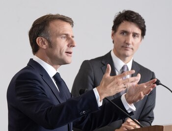 El presidente de Francia, Emmanuel Macron, se ha reunido este jueves en Ottawa con el primer ministro de Canadá, Justin Trudeau, para acordar aumentar su cooperación en materia de defensa y seguridad en distintas regiones del mundo como Ucrania, el Indo-Pacífico, el Ártico o el Sahel. "Profundizaremos nuestra cooperación en materia de defensa y seguridad con vistas a apoyar a Ucrania, contribuir a la estabilidad y la seguridad regionales en el Indo-Pacífico, reforzar nuestra colaboración en la gestión de crisis y en la modernización de nuestras Fuerzas Armadas y luchar contra la injerencia extranjera y la manipulación de la información", reza un comunicado conjunto. En ese sentido, han destacado su apoyo a Ucrania "durante el tiempo que sea necesario" hasta que logre derrotar a Rusia y recuperar su "independencia, soberanía e integridad territorial" respecto a las fronteras reconocidas internacionalmente. Es por ello por lo que fortalecerán su cooperación en el apoyo de material militar y en el entrenamiento de tropas, tal y como han hecho hasta ahora con "decenas de miles de soldados ucranianos", así como con la ciberseguridad del país. De igual forma han hecho especial hincapié en la deportación de niños ucranianos hacia Rusia, que consideran como "un problema importante" en el que seguirán centrados para lograr el regreso de estos niños a sus hogares en Ucrania. "Canadá y Francia son dos países del Pacífico que desean contribuir activamente a la estabilidad y la seguridad regional. Nuestro objetivo es mantener una región del Indo-Pacífico abierta e inclusiva, libre de dependencias excesivas y de cualquier forma de coerción, y basada en el respeto del Derecho Internacional, la soberanía y el multilateralismo", continúa la misiva. En ese sentido, han mostrado su compromiso con la paz y la estabilidad tanto en la península de Corea --basándose en las resoluciones y sanciones del Consejo de Seguridad de la ONU-- como en el mar de China Meridional, por lo que ambos países cooperarán aún más en el análisis estratégico y militar en la región, así como estudiarán futuras misiones de patrullaje conjunto. Los dos países también han dado especial importancia a la crisis en Haití, a las tensiones en Oriente Próximo, a seguir colaborando en el mar Ártico canadiense y en la región del Sahel, especialmente en el golfo de Guinea, donde Canadá "brinda un apoyo inquebrantable" al Ejército francés. Las Fuerzas Armadas de ambos países profundizarán aún más su asociación a la hora de modernizarse y mejorar su capacidad de interacción en materia de transporte, abastecimiento o reclutamiento. "Canadá y Francia se comprometen a aumentar sus recursos de defensa y a reforzar sus capacidades para garantizar su soberanía y apoyar a nuestros socios. En este contexto, desarrollaremos el intercambio de nuestros respectivos conocimientos tecnológicos y trabajaremos en nuevas cooperaciones concretas en los ámbitos terrestre, marítimo, aéreo y cibernético", han añadido. Por último, París y Ottawa han acordado reforzar sus intercambios de información para hacer frente a las amenazas referentes a operaciones de injerencia extranjera y manipulación de la información.