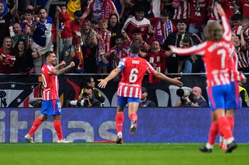 Un gol de Ángel Correa en el minuto 96 permitió al Atlético de Madrid empatar (1-1) contra el Real Madrid este domingo en la octava jornada de LaLiga EA Sports celebrada en el Cívitas Metropolitano, un derbi con mucha tensión y poco fútbol que estuvo interrumpido media hora por el colegiado por lanzamiento de objetivos. El argentino volvió a salir al rescate y el Atlético se abonó de nuevo a la épica esta temporada, con un gol postrero que salvó el derbi de la capital e impidió la escapada del Madrid. Los blancos se quedan así a tres puntos del Barça y, los rojiblancos, a cinco, después de que los catalanes perdieran el sábado contra Osasuna. No fue ni mucho menos el mejor derbi entre ambos. Diego Pablo Simeone apostó por sus tres tenores arriba: Julián Álvarez, Alexander Sorloth y Antoine Griezmann, pero nadie conectó con ellos. Tampoco el Madrid tuvo excesiva producción ofensiva, aunque Oblak hizo la parada del primer tiempo a Fede Valverde. También Julián Álvarez probó a Thibaut Courtois, pero los del 'Cholo' apenas tuvieron el balón, a merced de un Madrid sin colmillo, con la ausencia de Mbappé. Tras el descanso, Simeone metió a Koke y el capitán ordenó a su equipo y también hizo llegar balones arriba pero, a balón parado, llegó el 0-1 de Eder Militao. Un centro de Vinícius encontró al defensor solo en el segundo palo y los de Ancelotti golpearon primero en un derbi que se manchó entonces con el lanzamiento de objetos. Busquets Ferrer pidió la advertencia por megafonía y, la insistencia del fondo del estadio tirando mecheros y botellas a Thibaut Courtois, llevó al colegiado a seguir el protocolo y suspender el partido durante media hora. El parón enfrió el derbi y el Madrid aprovechó para corregir los errores que estaba teniendo en la salida del balón. Simeone metió a Correa y Rodrigo Riquelme y el Atlético, con más uno contra uno, se acercó a la meta rival también con Samuel Lino. Los de Ancelotti vieron el partido terminado antes de tiempo y Endrick perdonó una buena contra, que se volvió a jugar como ante el Stuttgart. En el descuento apareció de nuevo la fe rojiblanca, con un gran pase de Javi Galán que Correa llevó hasta la red aunque a trompicones. También hubo suspense por la revisión del VAR, pero el tanto subió, el derbi se repartió y el Barça salió ganando. Al final, Llorente fue expulsado por una entrada y Tchouaméni y Le Normand se jugaron el tipo en un duro choque de cabezas. FICHA TÉCNICA. --RESULTADO: ATLÉTICO DE MADRID, 1 - REAL MADRID, 1. (0-0, al descanso). --ALINEACIONES: ATLÉTICO DE MADRID: Oblak; Nahuel Molina (Koke, descanso), Giménez, Le Normand, Reinildo (Javi Galán, min.76); Gallagher (Correa, min.70), De Paul; Llorente, Griezmann, Julián Álvarez (Riquelme, min.76) y Sorloth (Lino, min.56). REAL MADRID: Courtois; Carvajal, Militao, Rüdiger, Mendy; Tchouaméni, Modric (Lucas Vázquez, min.86), Valverde, Bellingham; Rodrygo (Fran García, min.90) y Vinícius (Endrick, min.87). --GOLES: 0 - 1, min.64, Militao. 1 - 1, min.96, Correa. --ÁRBITRO: Busquets Ferrer (C. Balear). Amonestó a Le Normand (min.63), Gallagher (min.70), Álvarez (min.75) por parte del Atlético. Y a Modric (min.40) en el Madrid. Expulsó a Llorente por roja directa (min.99). --ESTADIO: Cívitas Metropolitano.