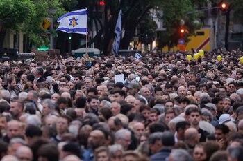 La numerosa colectividad judía en Argentina reclamó este lunes en Buenos Aires la liberación de los 101 rehenes que permanecen cautivos en la Franja Gaza, en una masiva concentración en las calles del barrio capitalino de Villa Crespo.