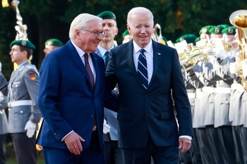 "Las cosas pueden mejorar, y deberíamos hacerlo. Nunca subestimes el poder de la democracia. Nunca subestimes el valor de las alianzas", insistió Biden durante una ceremonia en el Palacio de Bellevue, la residencia de la Presidencia alemana y con invitados como la centenaria superviviente del Holocausto Margot Friedländer.