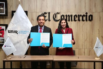 Los términos del convenio fueron corroborados en un acto protocolar de firma celebrado en la sede de El Comercio en Lima. El mismo fue protagonizado por Griselda Baldassari, generalista de RRHH del Grupo El Comercio, y por Martín Santivañez, country manager de UNIR en Perú.