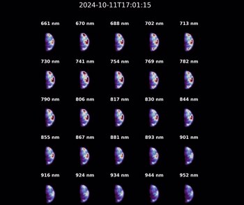 HyperScout H de Hera es un generador de imágenes hiperespectral que observa sus objetivos en más colores de los que el ojo humano puede distinguir, a lo largo de 25 bandas espectrales que van desde el rango de longitud de onda visible hasta el infrarrojo cercano de 650 a 950 nm. Estas imágenes de cerca de la Tierra se produjeron separando estas longitudes de onda para mostrar cómo funciona el instrumento en la práctica, como se observó el 11 de octubre entre las 01:59 y las 18:09 UTC.