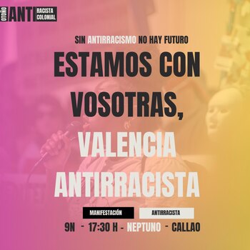 Este sábado 9 de noviembre diversas colectivas, organizaciones y activistas migrantes y antirracistas organizan una manifestación en Madrid bajo el lema 'Sin antirracismo no hay futuro. Estamos con vosotras, Valencia antirracista'.