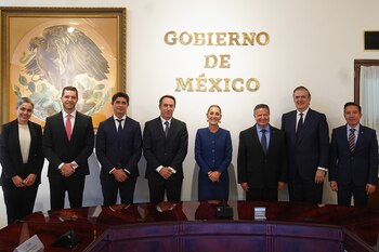 En la imagen, además del equipo de Galperin Lebach, aparece el titular de la Secretaría (Ministerio) de Economía de México, Marcelo Ebrard, quien explicó a medios que la empresa estima superar los 2.500 millones de dólares de inversión en México para 2025.