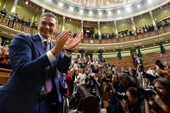 Madrid, 16 nov (EFE).- Pedro Sánchez es reelegido por tercera vez presidente del Gobierno en primera votación por mayoría absoluta (179 votos) y ninguna abstención. Votaron en contra PP, Vox y UPN (171 votos).