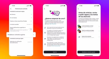 La compañía tecnológica ha comenzado, por tanto, a probar el restablecimiento de recomendaciones, para que "con solo unos pocos toques" los usuarios puedan borrar el contenido recomendado en apartados dedicados a ello. Esto es, Reels, Feed y Explorar.