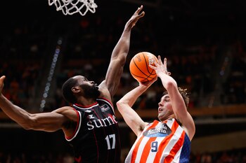 El joven escolta gaditano aseguró el triunfo visitante con cuatro triples en los primeros cuatro minutos del último asalto, incluido un ‘3+1’ que dejó sin respuesta al equipo naranja pese a los dos tiempos muertos prácticamente consecutivos de su entrenador (63-78, min.35).