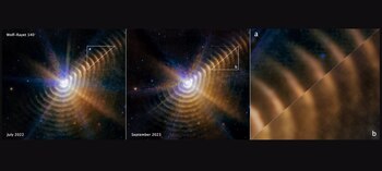 "Ver el movimiento en tiempo real de estas capas entre las observaciones de Webb, que se tomaron con solo 13 meses de diferencia, es realmente notable", dijo Olivia Jones, coautora del Centro de Tecnología Astronómica del Reino Unido en Edimburgo. "Estos nuevos resultados nos están dando una primera visión del papel potencial de estos sistemas binarios masivos como fábricas de polvo en el Universo".