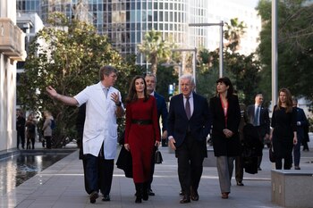 La monarca ha llegado junto al alcalde de Barcelona, Jaume Collboni; la ministra de Igualdad, Ana Redondo; la consellera de Salud de la Generalitat, Olga Pané; el delegado del Gobierno en Catalunya, Carlos Prieto, y el presidente de la Fundación Dexeus, Pedro N. Barri.