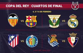 Por su parte, el FC Barcelona no tendrá un derbi, pero sí un choque de cierta rivalidad ya que se cruzará con otro campeón de la competición como el Valencia CF, frente al que cayó en la final copera de 2019 (2-1).