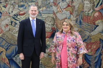El Rey Felipe VI ha recibido en audiencia este jueves en el Palacio de la Zarzuela a la gobernadora de Puerto Rico, Jenniffer González Colón, en el cargo desde principios de año y partidaria de que el actual estado libre asociado pase a convertirse en estado pleno dentro de Estados Unidos.