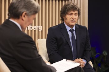 En una entrevista con el editor jefe de Bloomberg News, John Micklethwait, en Davos, Milei —que asistió esta semana a la toma de posesión de Donald Trump en Washington antes de volar al Foro Económico Mundial de Suiza— se deshizo en elogios hacia la “era dorada” prometida por el presidente estadounidense.