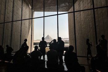 El museo, que abrió sus puertas el pasado 16 de octubre, contiene una colección de más de 55.000 valiosas piezas, entre ellas el célebre Tesoro de Tutankamón y la barca solar del faraón Keops, de más de 4.500 años de antigüedad.