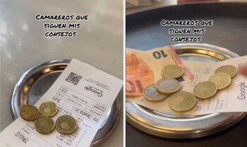 "Para que nos dejen propina, yo uso este truco: dejo 10 euros, dos monedas de un euro, dos monedas de 50 céntimos y tres de 20 céntimos. Y van a tener que dejar 60 céntimos de propina", comenta en el vídeo.