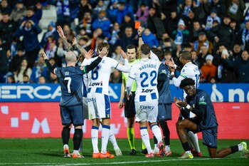 El central, en una de las últimas acciones antes del intermedio, vio una tarjeta roja directa por un agarrón al borde del área sobre Randy Nteka que el colegiado, Quintero González, consideró ocasión manifiesta de gol. Además, el Leganés debió hacer un cambio al retirarse lesionado Seydouba Cissé a los 22 minutos dejando su sitio a Renato Tapia.