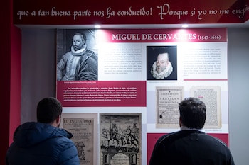 Así, dentro del tema cultural, el billete de 50 euros llevaría en el anverso a Cervantes y en el reverso se vería una biblioteca, donde unos cuantos adultos leen libros en papel y electrónicos y un niño y una niña intentan alcanzar un libro de una estantería.