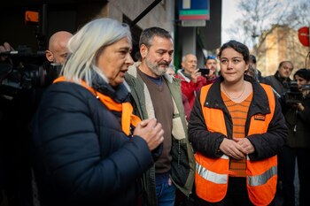 A su llegada, desde un balcón del edificio, el portavoz del Sindicat de Llogateres de Catalunya, Enric Aragonès, ha anunciado su llegada y ha instado a las personas concentradas en la calle a acercarse hasta la puerta para "no dejar espacio".