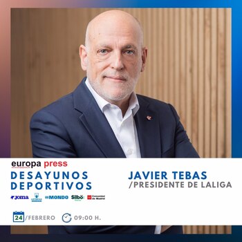 El presidente de LaLiga, Javier Tebas, la polémica por las decisiones de los árbitros en LaLiga EA Sports y la lucha de la patronal de clubes contra la piratería audiovisual serán, entre otros, los protagonistas este lunes, a partir de las 9:00 horas, en los Desayunos Deportivos de la agencia Europa Press.
