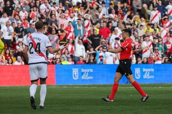 Madrid, 22 feb (EFE).- El Rayo Vallecano se ha marchado al descanso frente al Valladolid con la expulsión de Jorge de Frutos en el minuto 41 por una agresión a Sergi Cardona revisada por el colegiado en el VAR y tras la lesión de su capitán, Isi Palazón, tras un lance con Yeremy Pino, en una primera mitad que ha acabado 0-0.