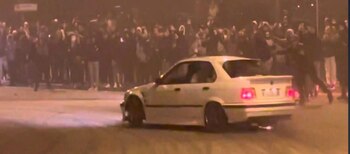 Además, se observa cómo los vehículos circulan a gran velocidad, cruzándose unos con otros en la misma trayectoria y pasando peligrosamente cerca de las personas que se encuentran en la zona. Realizan maniobras conocidas en el argot de los aficionados a las competiciones como el "drifting" o el "donuts".