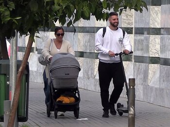 Mientras la influencer empujaba el carrito de su hija, el fisioterapeuta lo agarraba y la miraba orgulloso. Además, aprovecharon el paseo para hablar de sus temas más personales y pararse con conocidos.