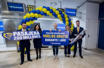 La 'low cost' irlandesa ha alcanzado esta cifra en un vuelo que cubría la ruta entre Fuerteventura y Madrid esta mañana. Por ello, la compañía ha regalado a la pasajera que le ha hecho cumplir este récord un año entero de viajes gratis.