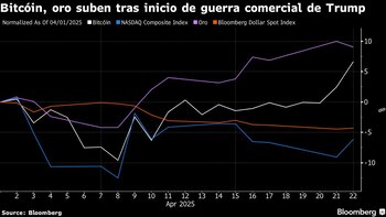 El bitcóin subía un 3,1% y cotizaba por encima de los US$90.000 a la 1:13 p.m. del martes en Nueva York. El índice del dólar spot se recuperó ligeramente tras caer a su nivel más bajo desde finales de 2023 el lunes, mientras que el oro superó la marca de los US$3.500 la onza por primera vez, antes de recortar algunas ganancias. El índice Nasdaq 100 por su parte se disparó cerca de un 3%.