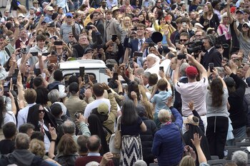Después de aquel momento en el balcón del corazón de la fachada de la Basílica vaticana, ante unos 50.000 fieles, el Papa dio su última sorpresa yendo a la Plaza de San Pedro para dar una vuelta en el papamóvil.