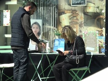 Ajena a la presencia de cámaras grabando la escena, Terelu se ha sentado en una terraza a consultar su teléfono móvil mientras su chófer iba a buscarle su refresco favorito antes de ir a un centro de belleza a ponerse a punto para el gran día.