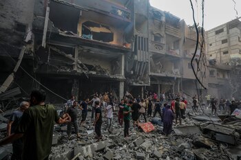 El servicio de emergencias de Defensa Civil de Gaza, cuyos rescatistas trabajan desde la madrugada en el lugar del ataque, estiman que 25 personas continúan atrapadas entre los escombros del edificio y desconocen su estado.