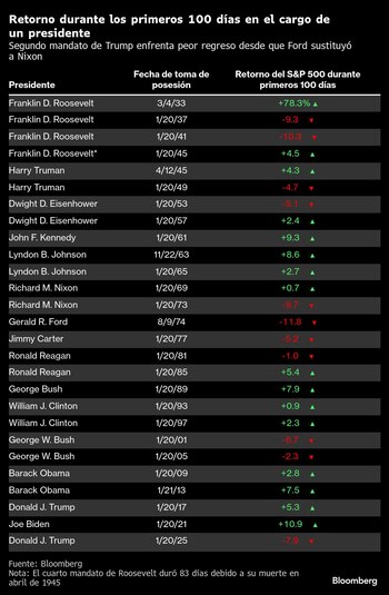 Nota Original: Trump’s First 100 Days Fuel Worst Stock Slump Since Ford in 1974