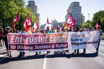 "Estamos movilizados por la paz y la justicia social. Estamos también movilizados para decir que queremos poner a los trabajadores en el centro del debate" porque desde la llegada de Trump a la Casa Blanca "se nos habla de guerra, de deuda, de inmigración y las cuestiones sociales están totalmente ocultadas", reclamó Sophie Binet, secretaria general de la Confederación General de Trabajadores (CGT) de Francia.