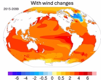 Estos modelos, que incorporan un escenario moderado-alto para las futuras emisiones de gases de efecto invernadero, indican que el agujero de calentamiento del Atlántico Norte no se verá afectado inmediatamente por los cambios en la circulación oceánica impulsados por el viento. Esto cambiará alrededor de 2040, ya que los vientos más débiles contribuirán a un mayor enfriamiento en la región durante varias décadas.
