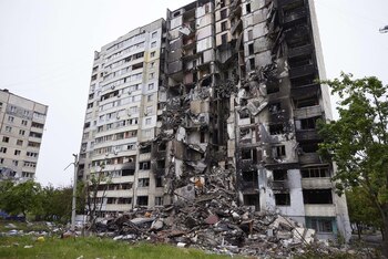 Otros edificios residenciales han sido blanco de los misiles rusos y en uno de los inmuebles de la ciudad se ha desatado un incendio entre las plantas seis y nueve a causa del impacto de uno de ellos, dejando a varias personas atrapadas entre los escombros.