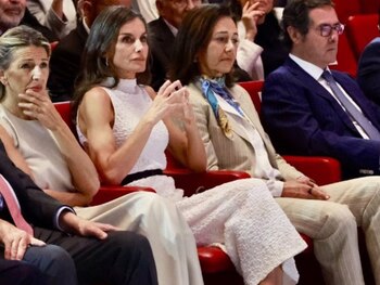 Junto a Don Felipe, el viernes rendían homenaje a los afectados por la erupción del Volcán de Cumbre Vieja que arrasó parte de La Palma en septiembre de 2021; y el sábado, impresionante con un elegantísimo diseño de Carolina Herrera en color blanco con flores bordadas en azul cielo, presidían en Santa Cruz de Tenerife un desfile terrestre y aéreo de representantes del Ejército de Tierra, el Ejército del Aire, La Armada, la UME (Unidad Militar de Eemergencias), la Guardia Real y la Guardia Civil.