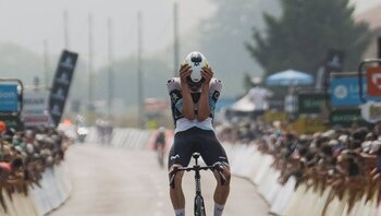 Tiró como un jabato, en posición de 'crono' para aprovechar su condición de especialista, y no paró hasta meta. Bien, se tomó un respiro para celebrar un triunfo que parecía, por sus gestos, inesperado hasta para él. Porque Van der Poel o Lipowitz insuflaban miedo a propios y extraños en la fuga.