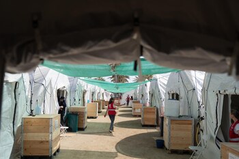 Hay una zona de reanimación y de urgencias, carpas para adultos y pediatría, así como un espacio reservado para ginecología, fisioterapia, traumatología y rayos X; además, la sección de salud mental se encarga de prestar una primera atención psicosocial a las víctimas, pero también a miembros del equipo durante su estancia y tras la crisis humanitaria, explica una psicóloga voluntaria.