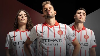 En este nuevo diseño, el equipo 'gironí' presenta los colores habituales, contando con las franjas verticales en rojo y un mayor protagonismo del blanco, además de un cuello polo clásico y detalles en negro que aportan un toque de distinción y, en el frontal, el patrocinador principal del club, Etihad Airways.