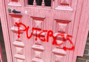 La Casa del Pueblo de la Agrupación Socialista de Leganés ha amanecido este jueves con una pintada en su puerta en la que se les acusa de "puteros".