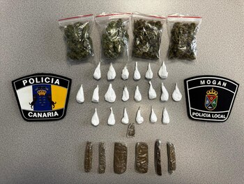 La Policía Local de Mogán, en la isla de Gran Canaria, ha detenido en la tarde de este jueves a un hombre que fue interceptado en el Centro Comercial de Puerto Rico con bolsas termoselladas de cocaína, hachís y marihuana.