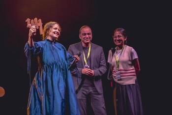 Natalia Lafourcade, un claro referente internacional en la defensa de los derechos humanos y la música como instrumento de paz, recibió al final recital el Premio Pirineos Sur a la Diversidad Cultural 2025 a manos de Carlos Sampériz, diputado de cultura de la Diputación Provincial de Huesca, y la directora del festival, Amalia Ortiz.