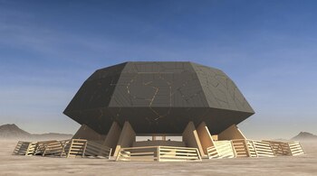 Con 14 metros de alto y 30 de diámetro, Temple of the Deep se construirá en madera en bruto, sin colas ni productos contaminantes, porque "el festival quiere reducir al mínimo las emisiones de carbono y recoger los residuos que se dejen cuando se queme la construcción --explica Molinero--, basado en el concepto del 'leave no trace'; es decir, dejar el desierto como se encontró.