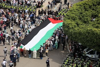 Decenas de miles de personas han salido este domingo a las calles de Rabat, la capital marroquí, para protestar contra la ofensiva militar israelí sobre la Franja de Gaza, la hambruna y el genocidio al que denuncian está sometida la población gazatí.